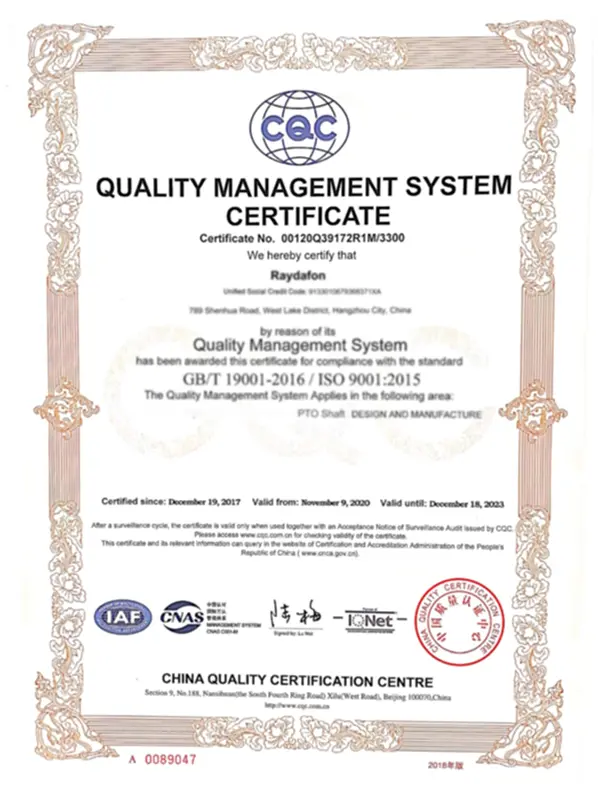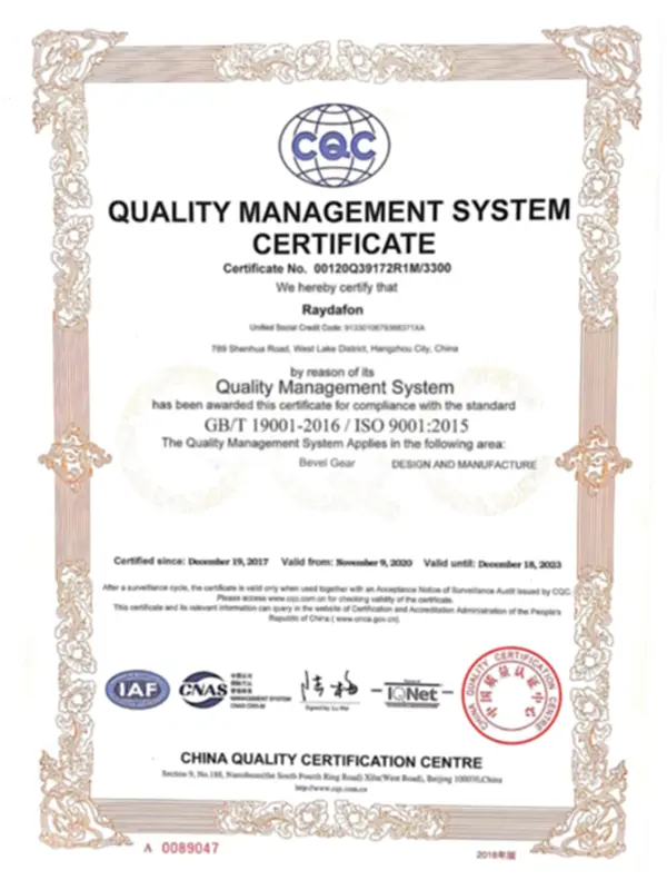 Η Raydafon έχει περάσει πολλές διεθνείς πιστοποιήσεις για να διασφαλίσει ότι τα προϊόντα της πληρούν τα παγκόσμια πρότυπα ποιότητας. Αποκτήσαμε τα ακόλουθα σημαντικά πιστοποιητικά γύρω στο 2015: