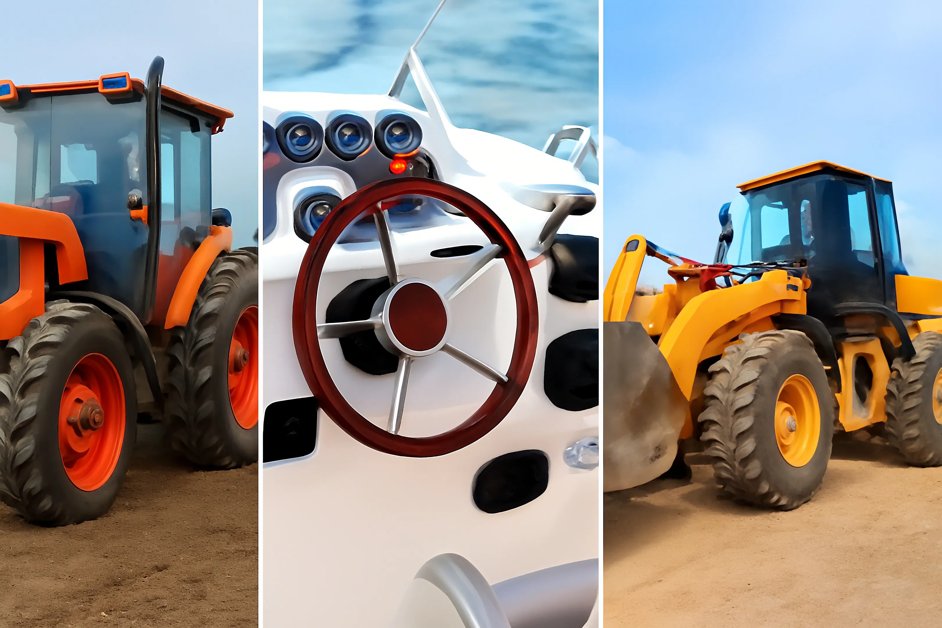Δεν είναι μόνο φάρμες και βάρκες, όμως. Αυτοί οι κύλινδροι χρησιμοποιούνται επίσης σε εξοπλισμό κατασκευής, περονοφόρα ανυψωτικά μηχανήματα, δασοκομικά μηχανήματα και φορτωτές. Σε αυτές τις μηχανές, είτε βοηθούν στο σύστημα διεύθυνσης στον μπροστινό άξονα είτε υποβοηθούν όταν το όχημα έχει ενωμένο πλαίσιο και χρειάζεται να αρθρωθεί.