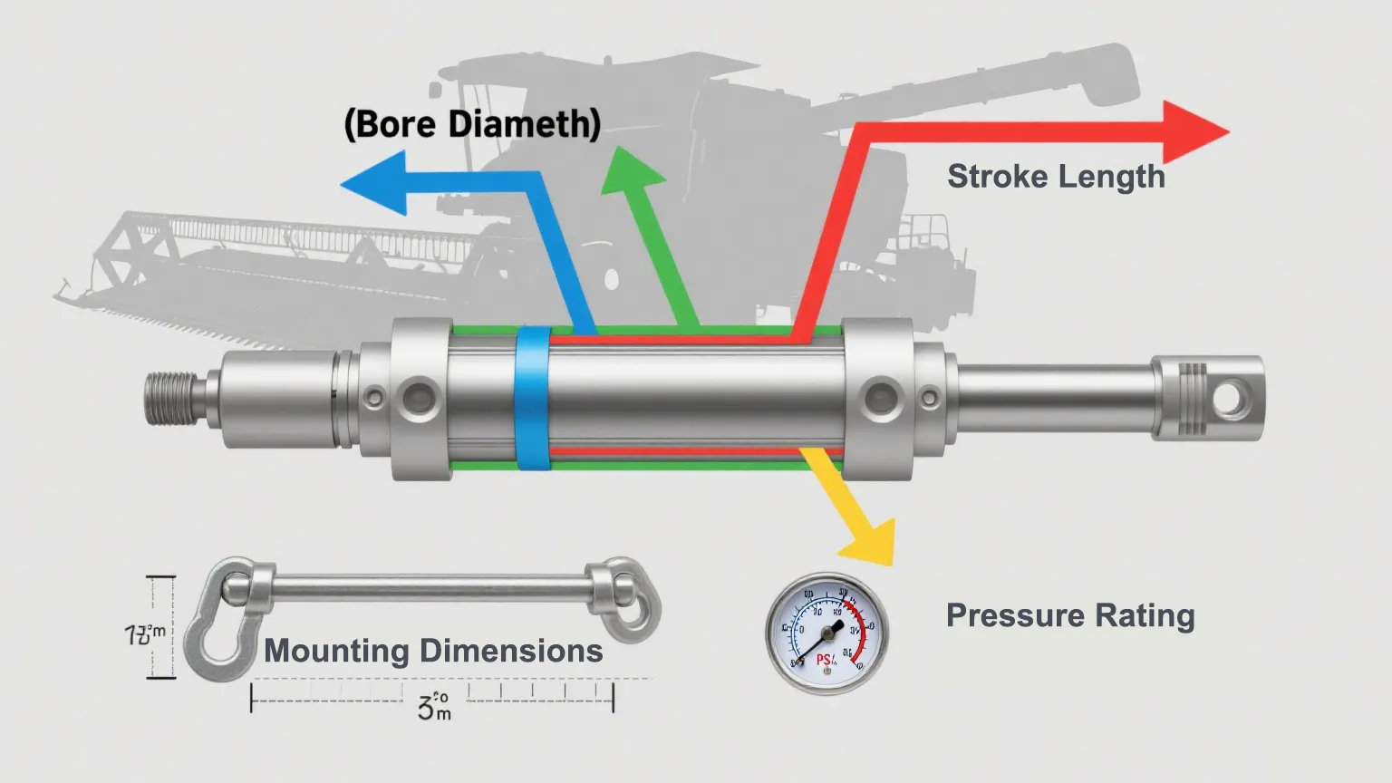 Πρώτα επάνω, διάμετρος οπής. Αυτό είναι που καθορίζει πόσους μυς έχει ο υδραυλικός κύλινδρος της θεριστικής μηχανής σας. Πολύ μικρό και θα δυσκολευτείτε να σηκώσετε αυτή τη βαριά κεφαλίδα όταν βρίσκεστε σε πυκνές καλλιέργειες. Πολύ μεγάλο, και σπαταλάτε δύναμη που θα μπορούσε να πάει αλλού. Ελέγξτε τις προδιαγραφές του παλιού σας κυλίνδρου ή το εγχειρίδιο της θεριζοαλωνιστικής μηχανής σας — αυτός ο αριθμός πρέπει να ταιριάζει, απλός και απλός, εάν θέλετε το είδος της δύναμης που χειρίζεται τις δύσκολες μέρες στο χωράφι.